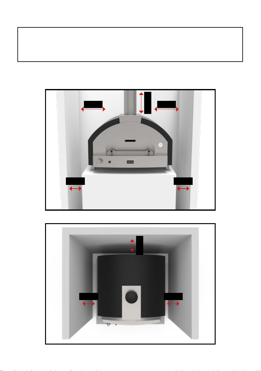 CAUTION: When being used, place the oven at a safe minimum distance from
