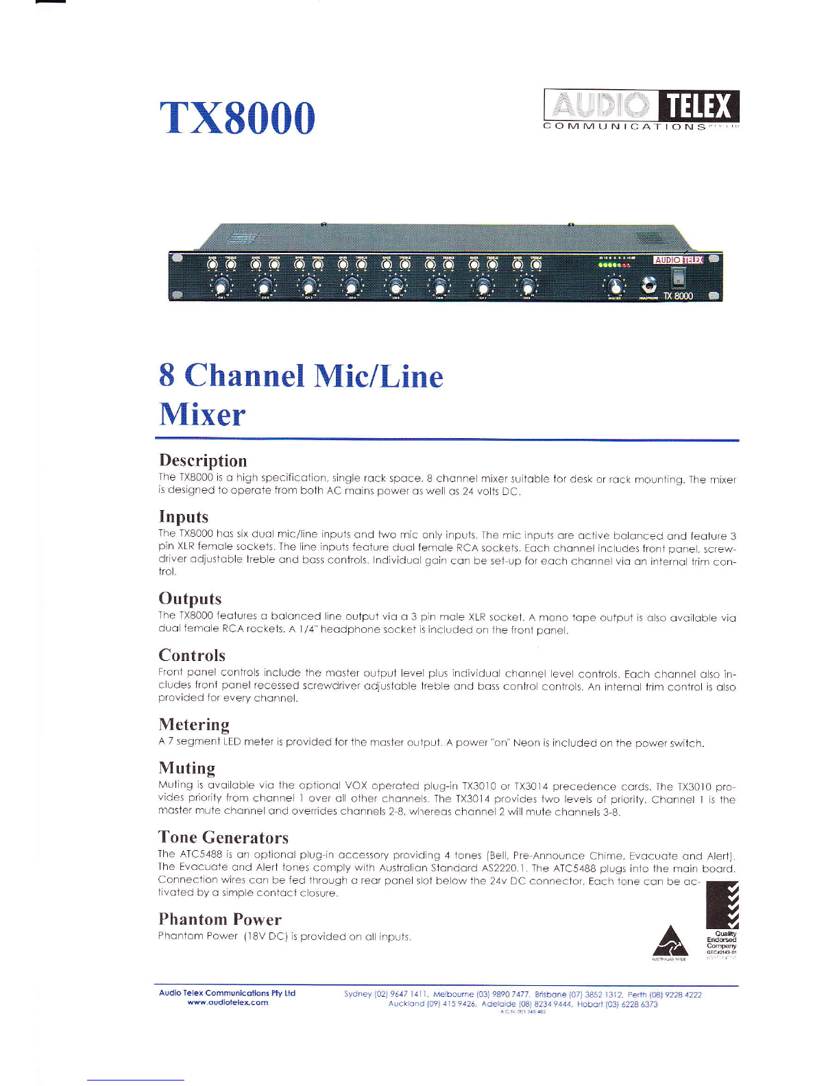The mixer sholl be on Audio Telex modelTXB000 monufqctured in Auslrolio