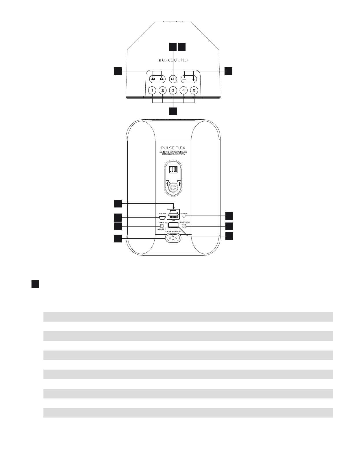 PLAY/PAUSE BUTTON : This button has multiple functions – a visual indicator of network connectivity and a PLAY/