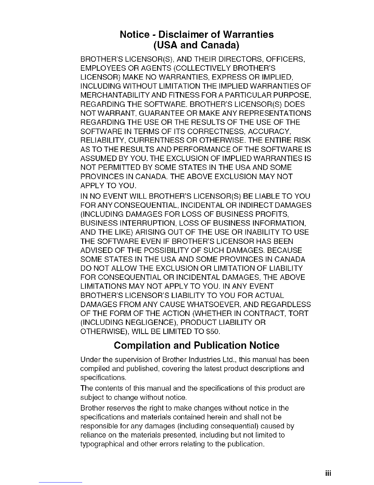 described above, Brother shall not be liable