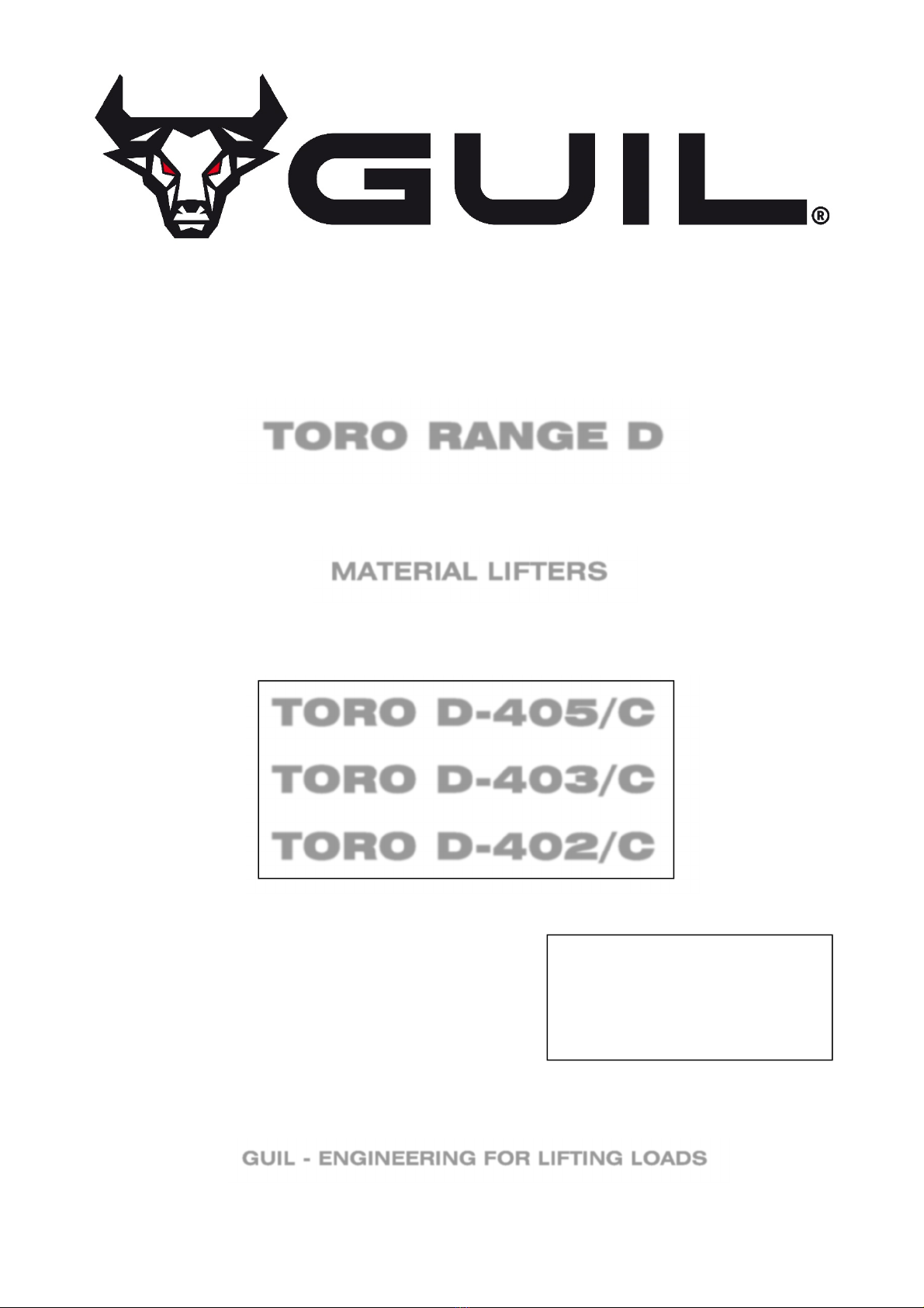Thank you for having chosen a GUIL® material lifter. Your TORO machine has been examined and checked