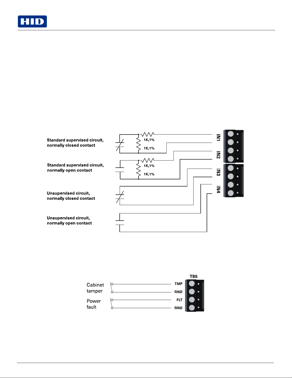 A supervised input circuit requires adding two resistors with value of 1kΩ, 1% to the circuit to facilitate proper reporting