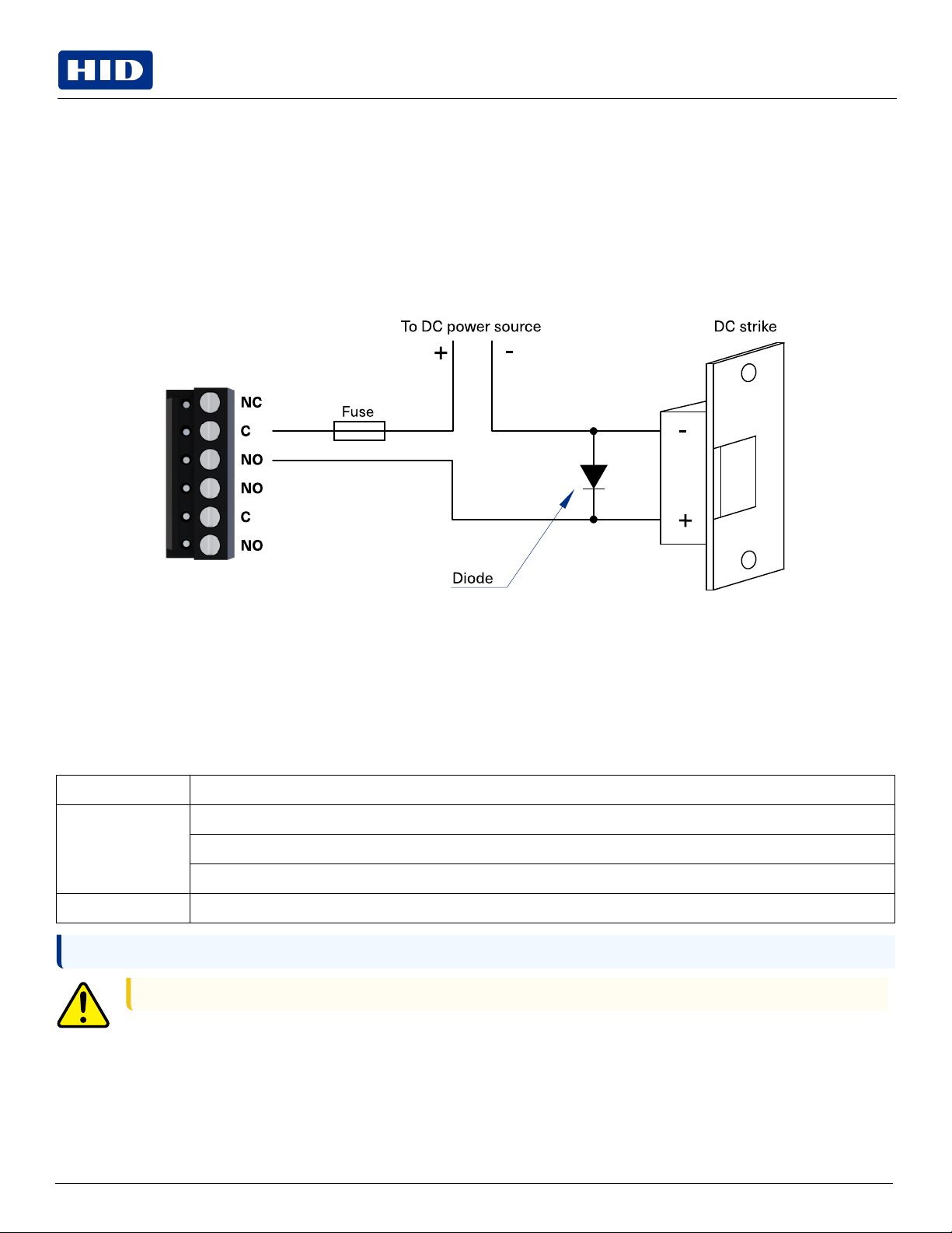 lFor 12 V DC or 24 V DC strike, diode 1N4002 (100V /1A) typical.