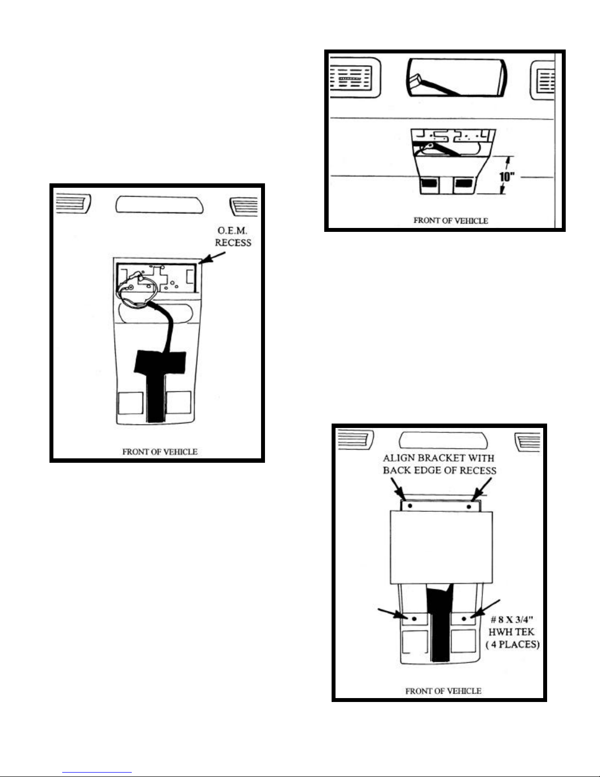 front of console to the inner roof of vehicle using (2)