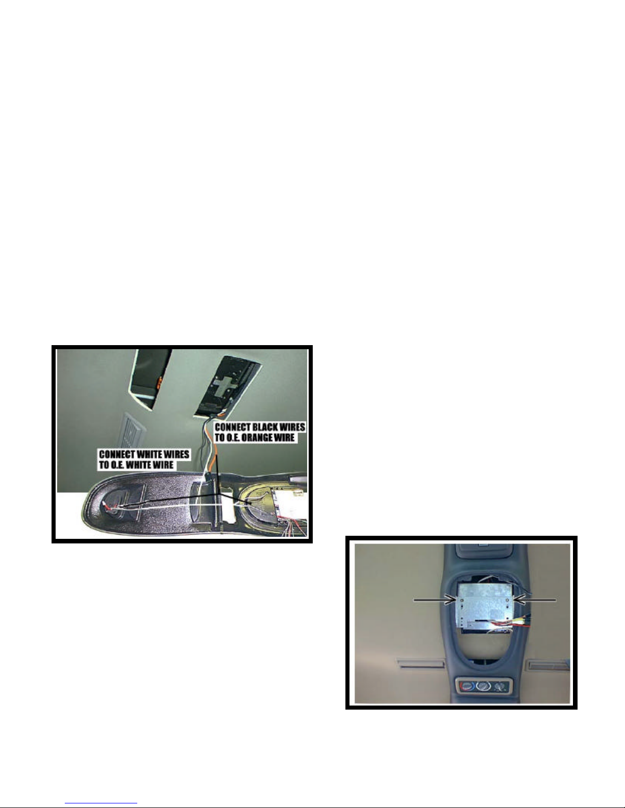 and video system. Connect the white wires from lights to the O.E. white wire. Connect the black wires