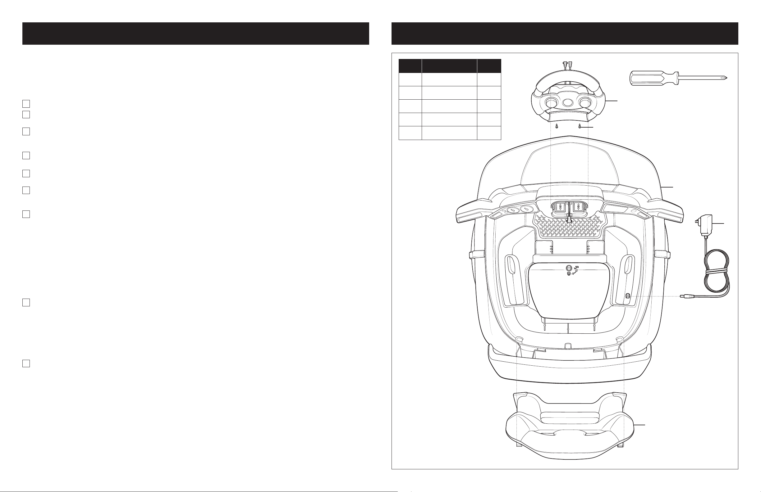 • The ride-on toy must be assembled by an adult who has read