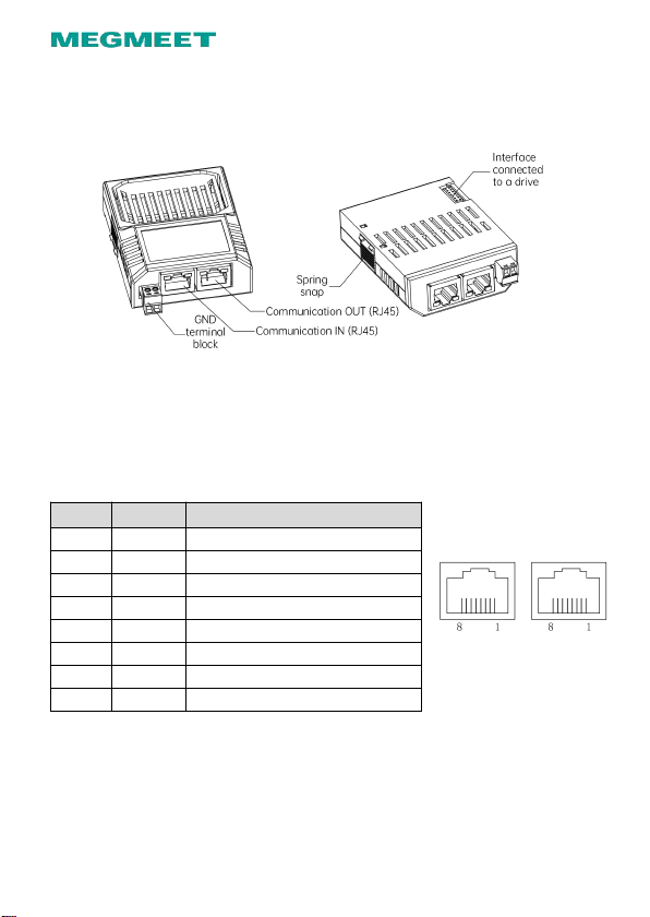 The option has GND, two RJ45 ports and the interface connected to a drive.