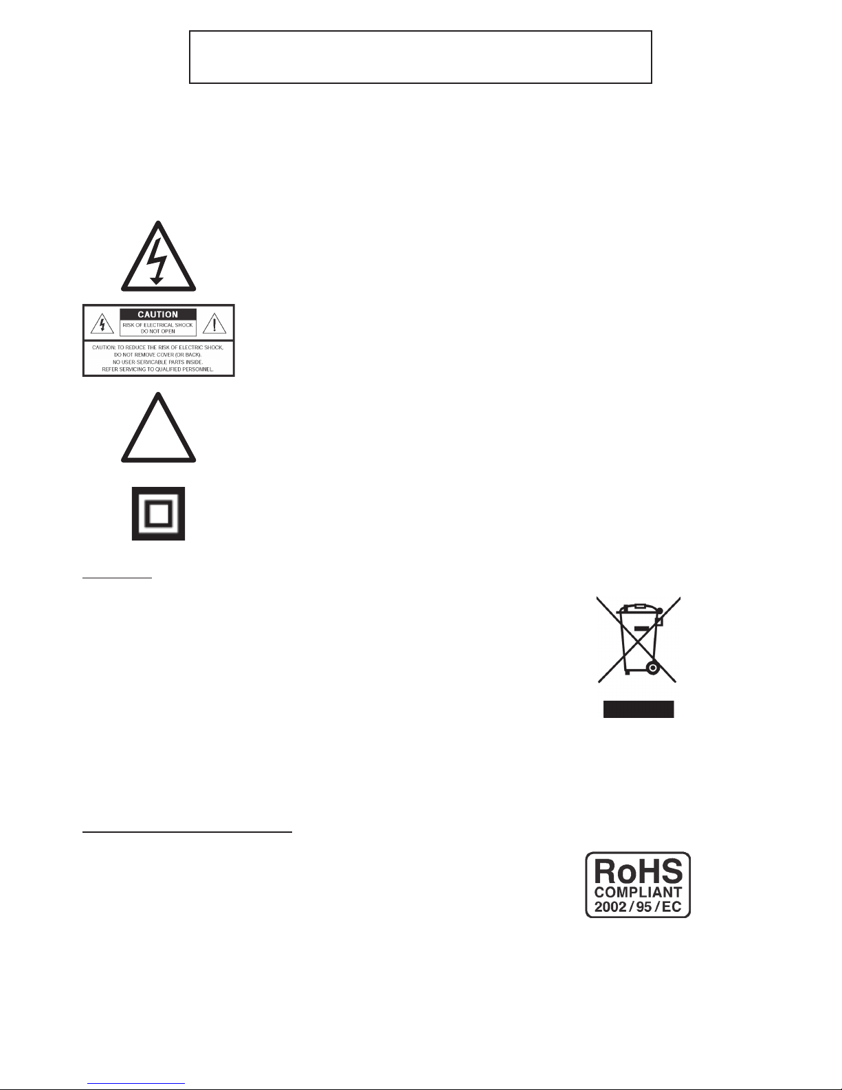 Refer all servicing to qualied service personnel. Servicing is required when the apparatus has been damaged