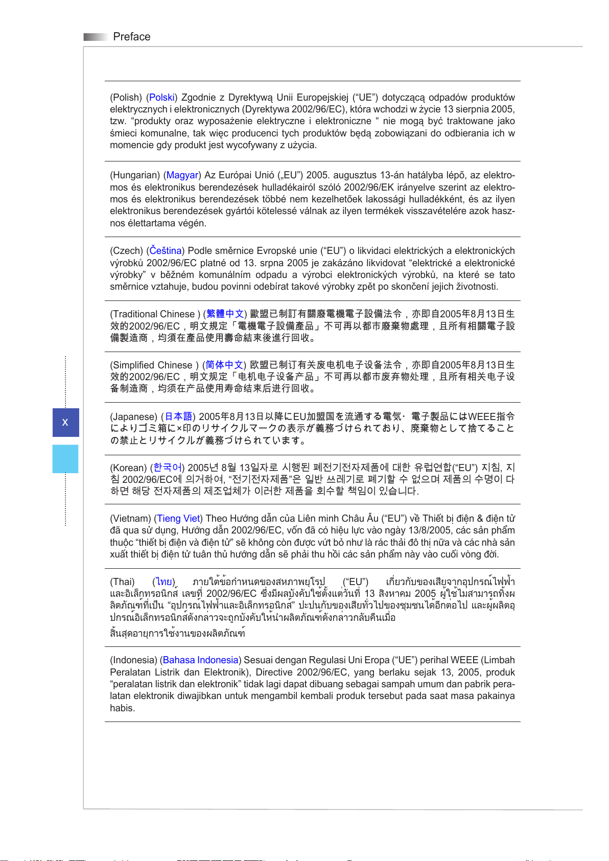 (German) (Deutsch) Gemäß der Europäischen Union (“EU”) Richtlinie über Elektro-und Elek-