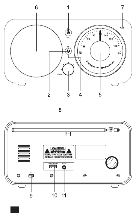 2. Sélecteur de fonction: FM ou Bluetooth
