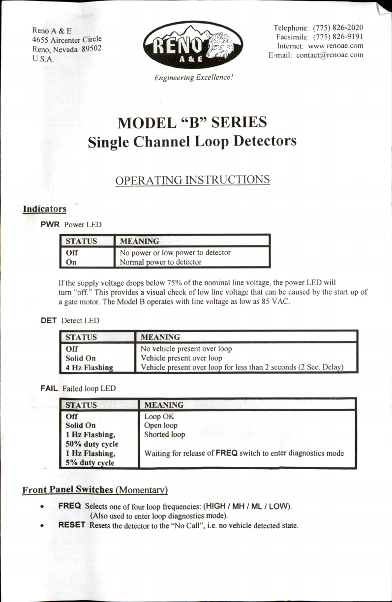 Reno A&E B Series Bedienungsanleitung