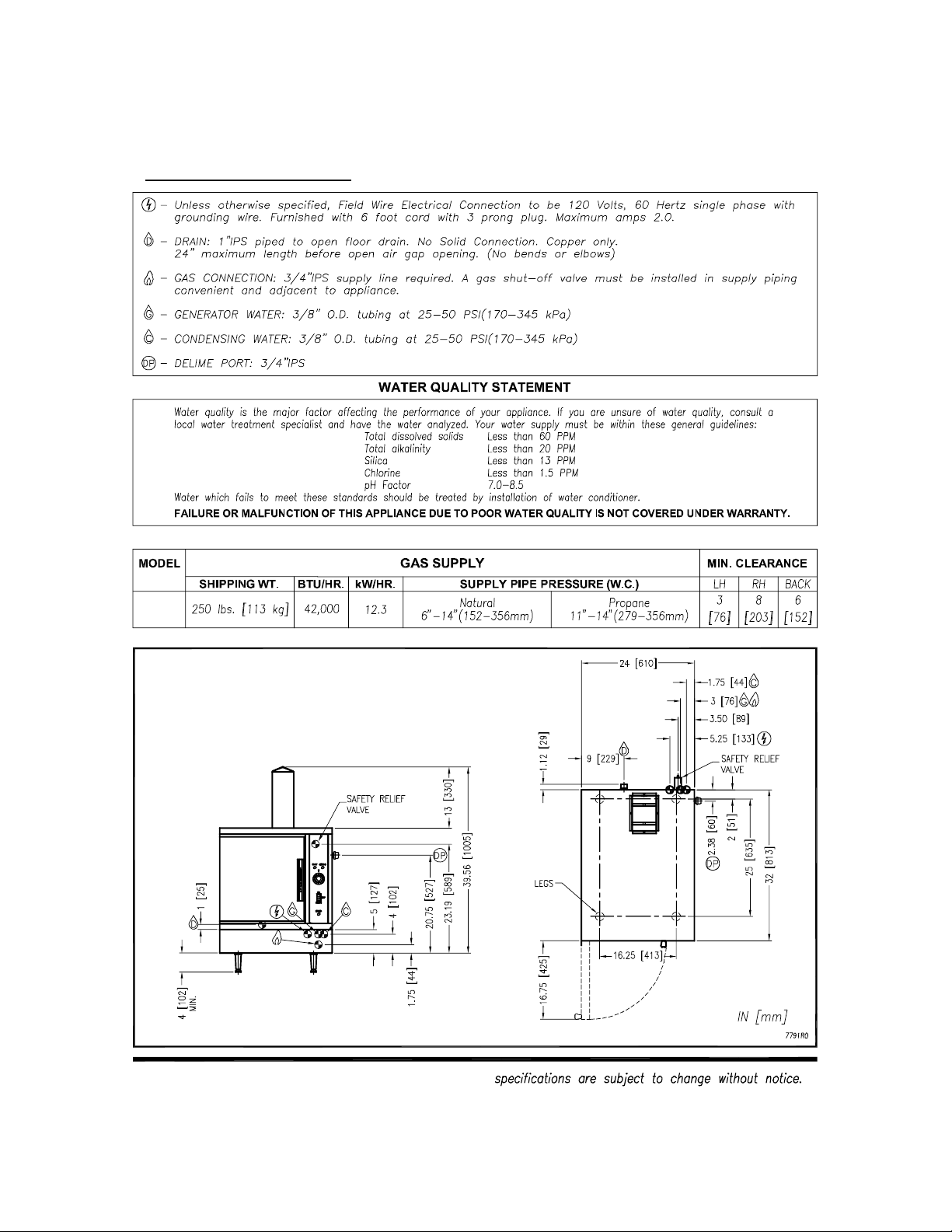 It is important that the water supply connected to this steamer be softened to no more than 2.0