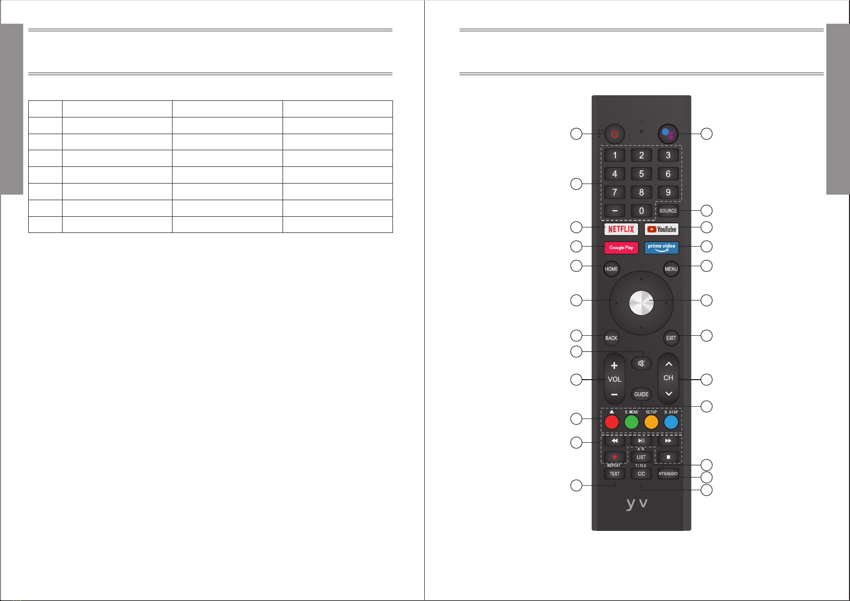 18. CH∧/∨: Press these buttons to change channel upward or downward.
